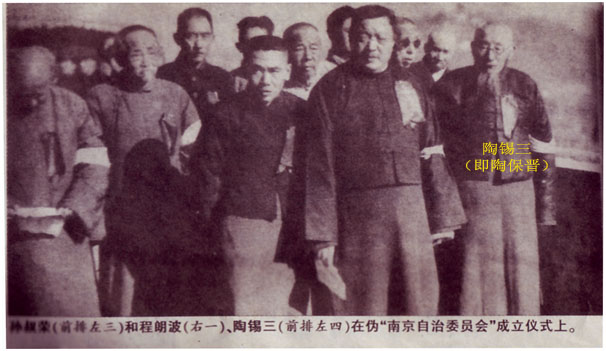 红卍字会长陶保晋和他的社会影响力以及精通日语的个人背景,被入侵者视为非得不可的一块“亲日肥肉”,他们有备而来,有谋而动。首先在军事占领的同时,野田部队冲进陶保晋在汤山的《陶庐》温泉别墅,疯狂扫荡、狂饮乱舞之后,立即霸占为日军司令部所有。接着便开始软硬兼施地逼他参与组建伪政权。