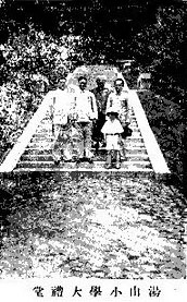 径上焉。晚餐毕.集廊下吟诗读书.或唱歌以为乐。北村氏因被求作纪念之挥毫.遂为书一纸.其文为“清灵较净体尤重要”。予亦大书“兹奉神命特至此地建设上天国运动”等语.并署名于其下。惟字殊恶劣.不堪入目。在写作俱佳之中国人士前大胆书此.诚可谓班门弄斧。乃张君竟极口夸赞.亦觉令人惭愧无地。嗣烦濑浪为舌人作诗.请教于张君.并述社会改良意见.叩询其赞否。无何.张君提议齐修证功.予立表赞同.且对此中国绅士深表敬意。在日本方面若提及律师.则必想其与花柳界颇有缘者。乃张君则在周旋宾客间时.仍不忘敬虔之念.至可佩也。三十分钟之证功告毕.即向神作感谢之祈祷而行就寝。屋主陶君适因事他适.未获与晤.殊以为憾。闻陶君系东晋陶渊明之后裔.故客厅内有陶渊明之肖像画。要之.予虽仅在南汤山作二日之游.而其快慰情形则为予所不能忘也。返南京后.即由道院招待在花园饭店进午餐.餐毕告别.赴车站.乘京沪路车.向沪出发。予等此次来京.虽未获与须藤君晤面.但诸承道院方面派新闻记者周君、谢君等照拂一切.故尚未感不便。关于宣传方面记事.将由北村氏起稿.庶予不再赘述矣。