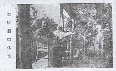 张公衡游记: 丙寅仲春.偕王铁珊将军及陶庐主人自北京南下.劝导和平。至宁适予手患湿癣甚剧.承主人邀至南汤山陶庐中之温泉。洗濯之初.住一宿.浣洗数次.即见轻减。讵回城后.又复如初。逾日主人再招往.盘桓五日.重加浴洗.大见功效。并承主人导往各处游览。山之南北皆有温泉.源泉滚滚.甚可贵也。此泉水可疗肺痨风湿等疾.惜乎乡人因陋就简.藉地筑池.砌以围垣.上无屋顶.中隔一墙.门分两户.男女则分而浴之。外宾之欲来此而沐浴者.无可栖迟.遂亦无人问津。主人有见于此.于是在汤山之北面建筑别墅.名为陶庐.客厅宿舍浴室.结构极其完美.今已七载。园中花木业已成荫.山庄增色.灵泉益彰.远道之来游者络绎不绝.如岑西林诸公。在此浴瘳宿疾者.正不知凡几。以此为主人寿世之功.不其然乎。余承主人招待之殷.获瘳癣疾.爰泚笔而为志感谢。